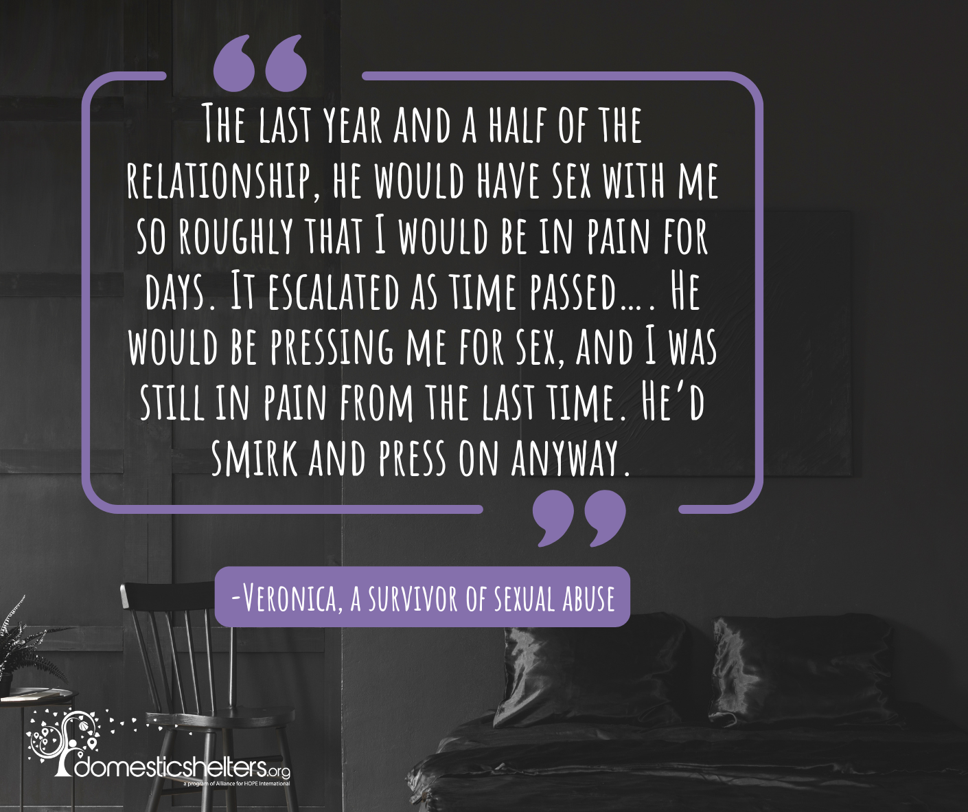 Sometimes domestic abusers will use sex as a kind of punishment or a way to seek revenge. Veronica described her boyfriend deliberately hurting her during sex.